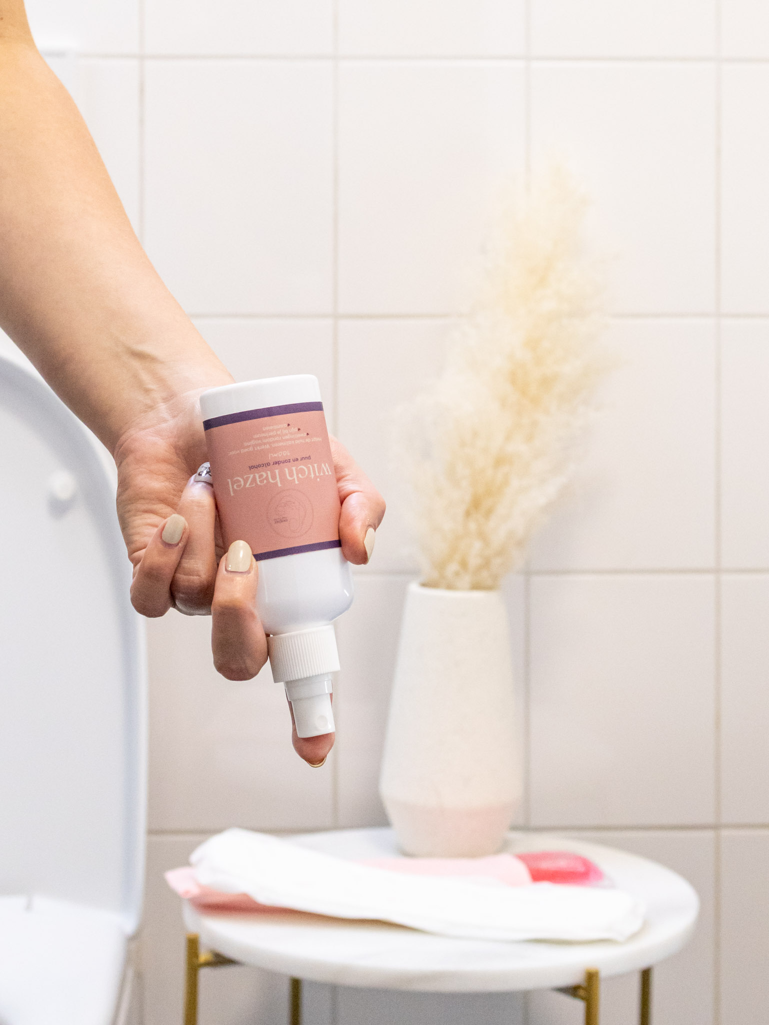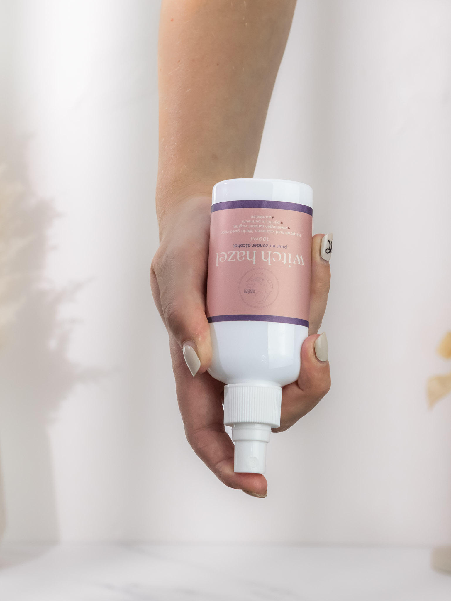 Unser Hamamelis-Spray für die Zeit nach der Geburt ist 100% natürlich und enthält keinen Alkohol. Es ist also perfekt für die empfindlichen Bereiche um Ihre Vulva, Ihre Vagina und Ihren Damm geeignet. Sie können es direkt auf Ihre Haut sprühen, zum Beispiel wenn Sie auf der Toilette sind oder nach dem Duschen.
